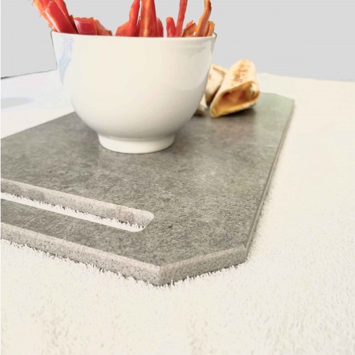 The board can be used for home or industrial kitchen chopping, cutting, serving or as a trivet. Dekton stone is scratch , abrasion, stain, extreme heat and extreme cold resistant. We sometimes worry the Dekton stone will damage your utensils not the other way round. You will never need another chopping board again.